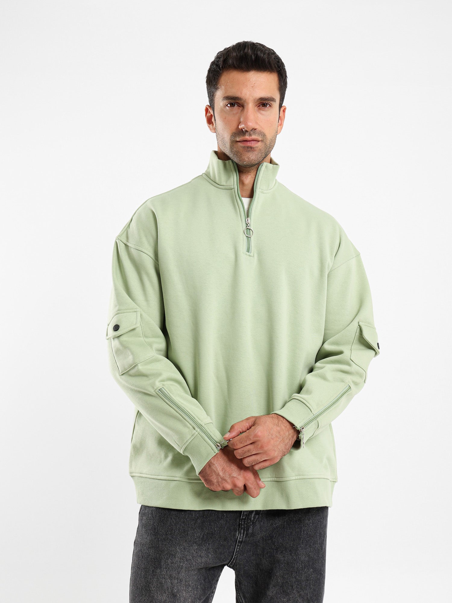Brushed Melton High Neck Zip Hoodie