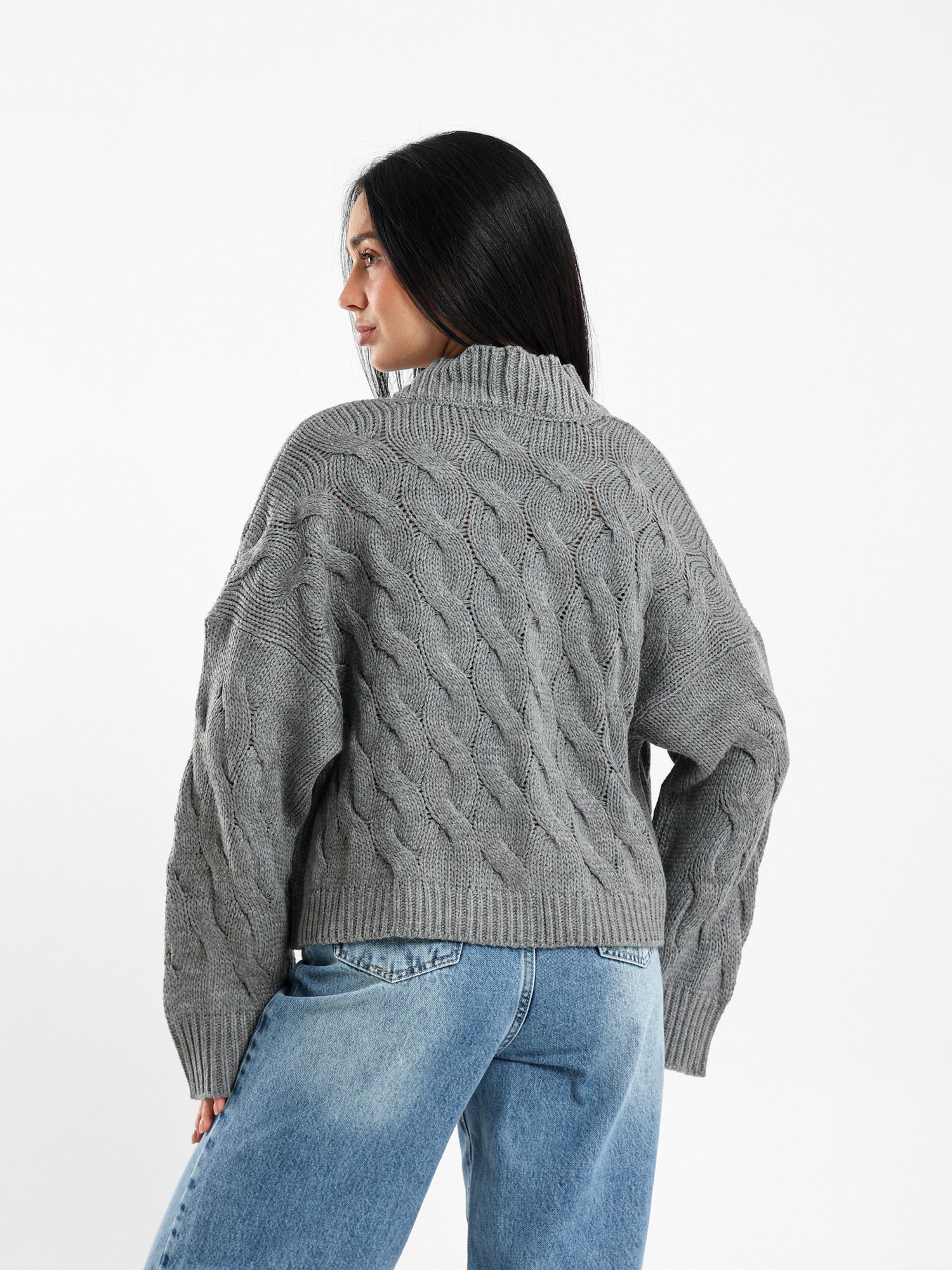 Cable Knit Medium-Length Cardigan