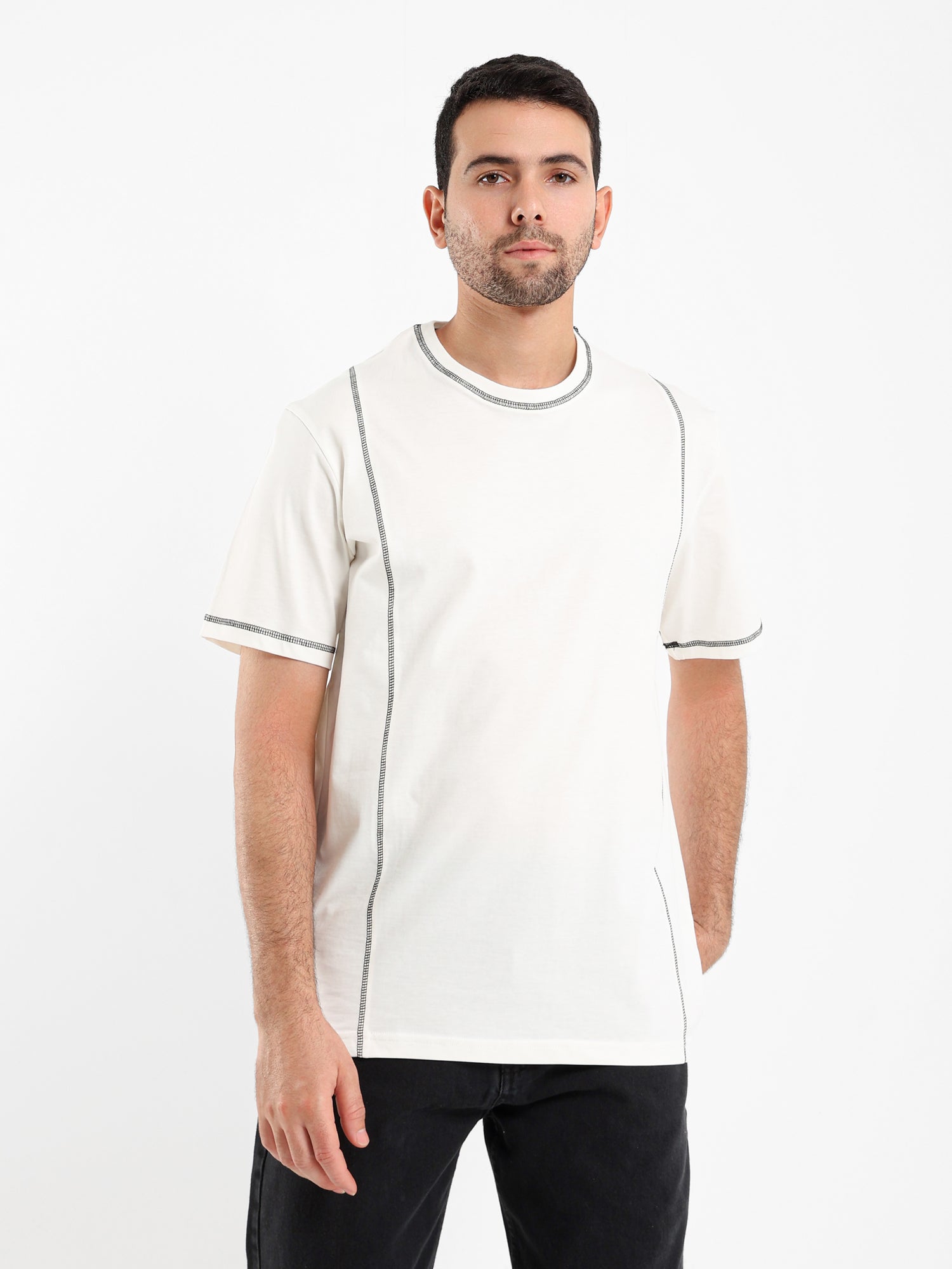 Contrast Detail Crew Neck T-shirt