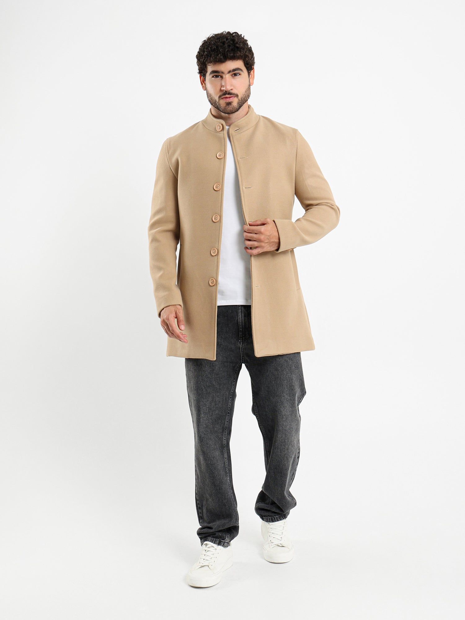 Regular Fit Wool Coat with High Collar