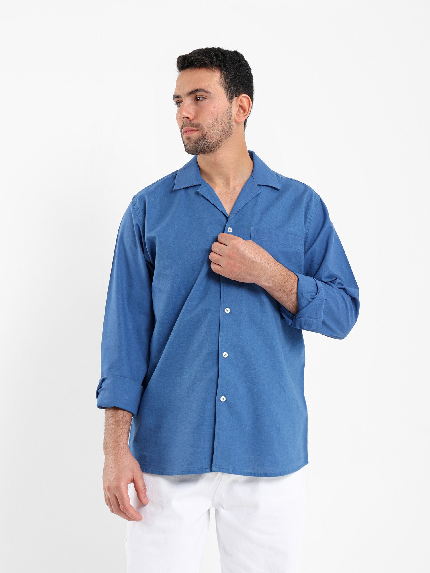 Relaxed Linen Shirt with Contrast Collar