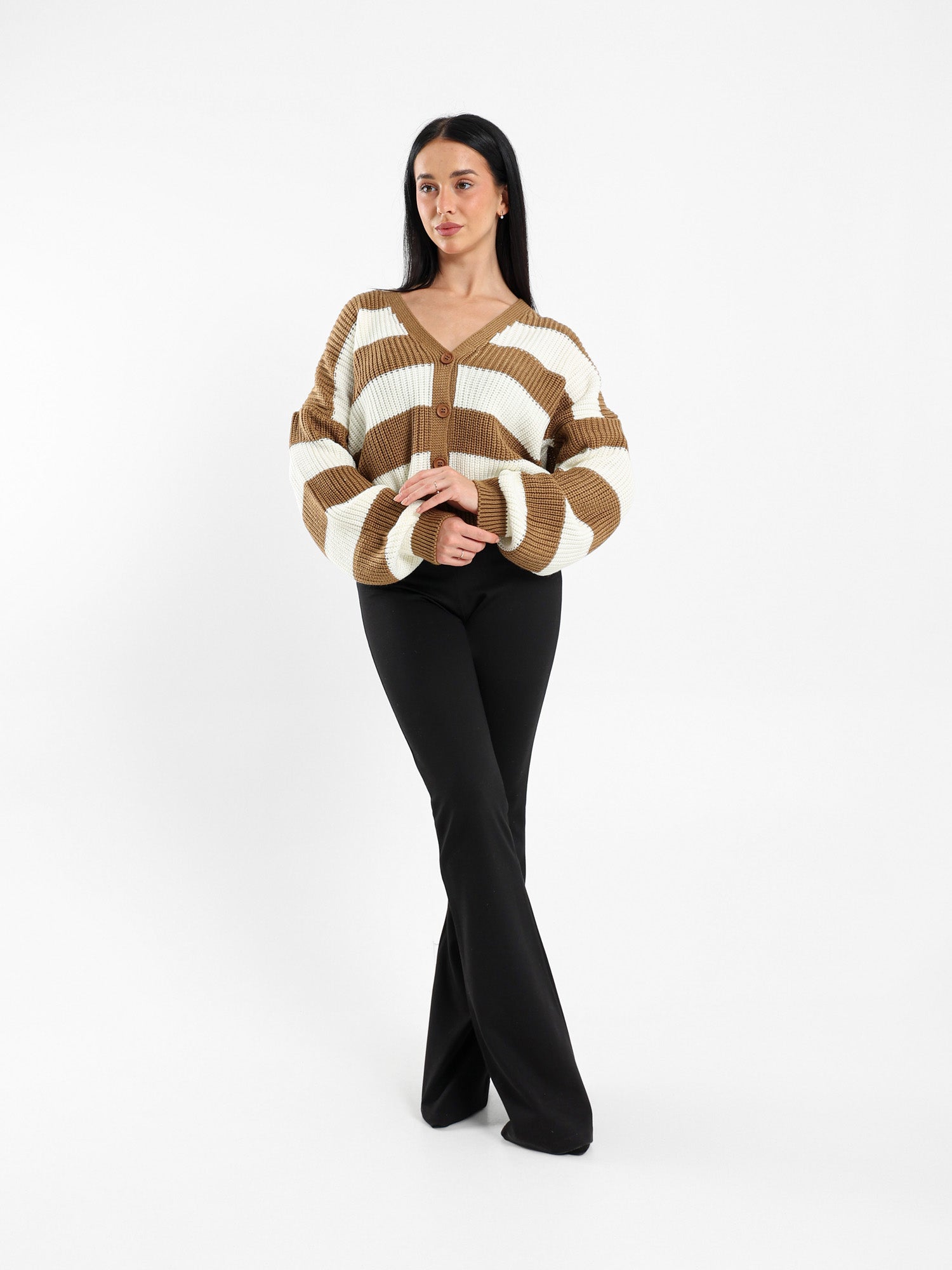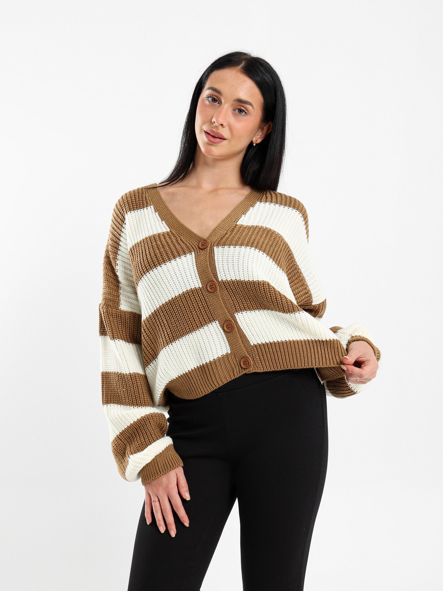 Striped Button-Up Loose-Fit Cardigan