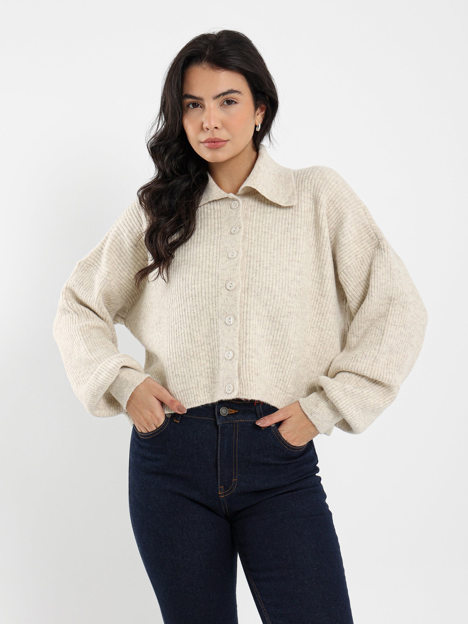 Wide Collar Button-Up Cardigan
