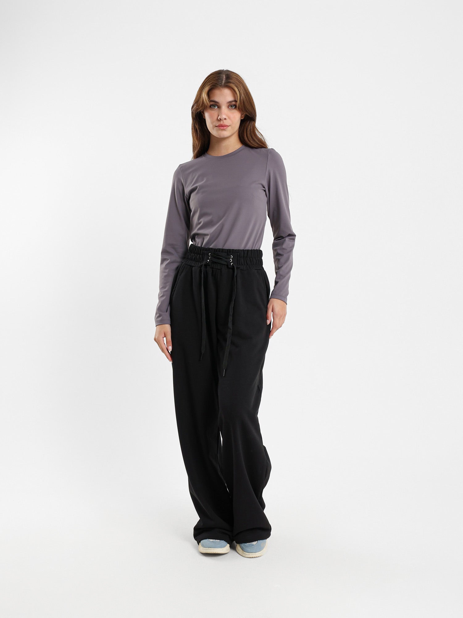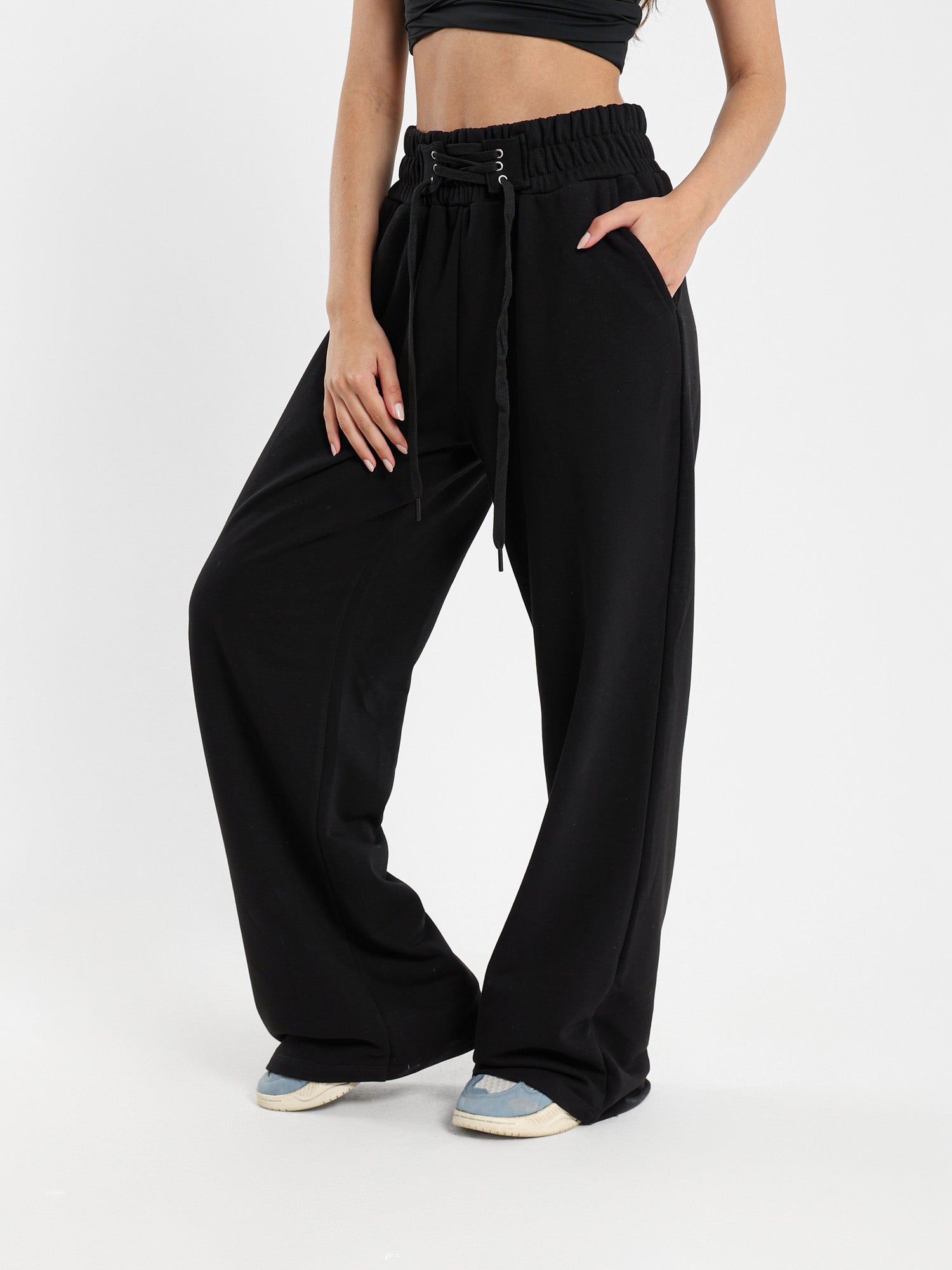 Wide-Leg Pants with Lace-Up Detail